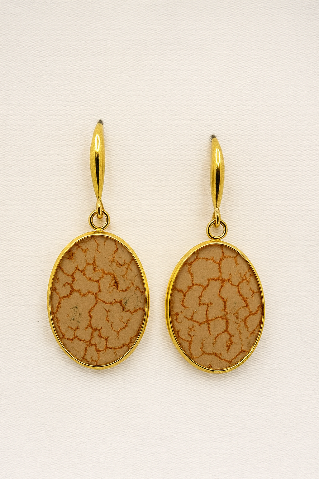 These beauties rock a cracked earth design in clay beige, streaked with warm copper veins — like nature’s take on abstract art. Each pair is unique, textured, and full of personality (just like your best stories). Handcrafted to shimmer subtly, they blend grounded elegance with that “I woke up chic” vibe. Minimalism’s cool cousin — calm, confident, and quietly dramatic.
